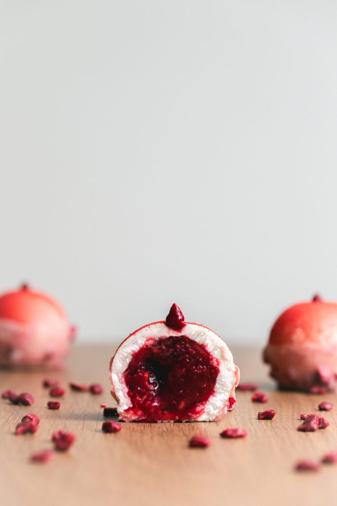 Framboise – Confit framboise, framboise fraîche, crumble, génoise, crème légère à la menthe